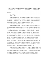 第二批学习贯彻XXX新时代中国特色社会主义思想主题教育领导小组第一次会议主持词同志们:按照党中央和X委统一部署,X第二批学习贯彻XXX新时代中国特色社会主义思想主题教育正式全面启动。第二批主题教育在基层开展,意义重大、责任重大。我局也相继召开了主题教育筹备会、主题教育动员部署会,为前期各项准备工作、思想动员工作做了充分准备。今天召集第二批主题教育领导小组成员召开第一次会议,主要目的是,听取X主题教育近期工作情况,审议领导小组有关制度文件,为X主题教育扎实开展夯实基础,持续推动主题教育走深走实、见行见效。参见今天会议的有,第二批主题教育领导小组全体成员、区委组织部X同志、区纪委监委第X纪检监察组...