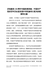 庆祝建党100周年专题党课讲稿:中国共产党的百年历史是实现中华民族伟大复兴的线索和主题大家好,今天我们一起来学习中国共产党的百年历史。2021年2月20日,习近平总书记在党史学习教育动员大会上作重要讲话,指出“我们党的一百年,是矢志践行初心使命的一百年,是筚路蓝缕奠基立业的一百年,是创造辉煌开辟未来的一百年”。“三个一百年”浓缩了中国共产党领导人民进行革命、建设、改革的实践。中国共产党的百年历程就是为践行初心使命而不懈奋斗的历程,包含了新民主主义革命时期、社会主义革命和建设时期、改革开放和社会主义现代化建设新时期、中国特色社会主义新时代四个历史时期。在这四个历史时期,中国共产党带领中国人民完成...