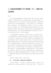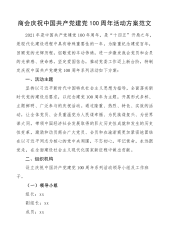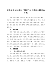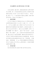 纪念建党100周年活动工作方案为纪念建党100周年,热情讴歌党的光辉历程和丰功伟绩,进一步弘扬党的优良传统,保持和发扬党的先进性,引导广大共产党员不忘初心、争创一流,拟在“七一”前后组织开展纪念建党100周年系列活动,具体工作方案如下。一、指导思想以习近平新时代中国特色社会主义思想为指导,全面贯彻落实党的十九大和十九届二中、三中、四中、五中全会精神,深入贯彻习近平总书记对广东重要讲话和重要指示批示精神,认真落实省委十二届九次全会和市委十一届九次全会精神,引导广大党员增强“四个意识”、坚定“四个自信”、坚决做到“两个维护”,进一步宣传和弘扬党的优良传统,提升党员干部思想境界,激励各级党组织和广大...
