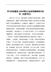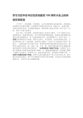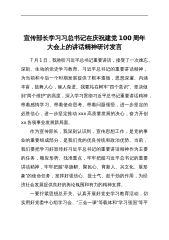 宣传部长学习习总书记在庆祝建党100周年大会上的讲话精神研讨发言范文