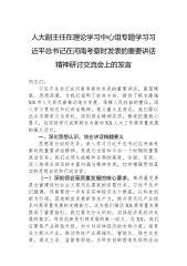 人大副主任在理论学习中心组专题学习习近平总书记在河南考察时发表的重要讲话精神研讨交流会上的发言同志们:习近平总书记在河南考察时发表的重要讲话,高屋建瓴、思想深邃,为我们指明了前进方向、提供了根本遵循XX市人大肩负着推动地方发展、保障人民权益的重任,深入学习贯彻总书记讲话精神,意义重大且深远。我们要以此次专题学习为契机,深刻领会精神实质,精准把握核心要义,切实将学习成果转化为推动XX人大工作高质量发展的强大动力。一、深化思想认识,领会讲话精髓要义思想是行动的先导。深入学习习近平总书记在河南考察时的重要讲话精神,是我们当前和今后一个时期的重要政治任务。我们必须从战略和全局的高度,全面、系统、深入地领会讲话的丰富内涵与精神实质,切实增强贯彻落实的思想自觉和行动自觉。(一)深刻领会高质量发展的核心要...
