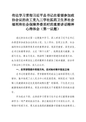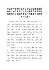 传达学习贯彻习近平总书记在看望参加政协会议的农工党九三学社医药卫生界社会福利和社会保障界委员时的重要讲话精神心得体会(第一议题)