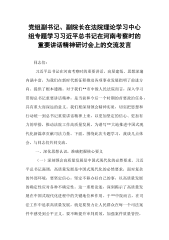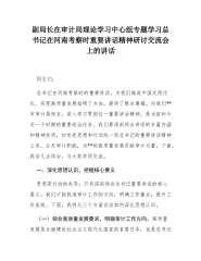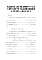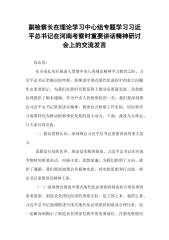 党组副书记、副院长在法院理论学习中心组专题学习习近平总书记在河南考察时的重要讲话精神研讨会上的交流发言同志们:习近平总书记在河南考察时的重要讲话,高屋建瓴、思想深邃内涵丰富,为我们在新时代新征程推动各项事业发展指明了前进方向、提供了根本遵循。对于我们**市中级人民法院而言,深入学习贯彻总书记重要讲话精神,是当前和今后一个时期的首要政治任务,具有重大而深远的意义。我们要深刻领会精神实质,切实把思想和行动统一到总书记重要讲话精神上来,以更加坚定的信心、更加有力的举措,推动法院工作高质量发展,为谱写**大地推进中国式现代化新篇章贡献司法力量。下面,围绕此次专题学习,我谈几点体会,与同志们共同交流。一、深化思想认识,准确把握核心要义(一)深刻领会高质量发展是中国式现代化的必然要求。习近平总书记强调,...