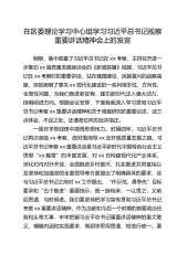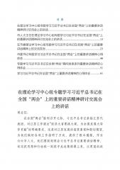 目录市委副书记在理论学习中心组专题学习习近平总书记在全国“两会”上的重要讲话精神研讨交流会上的发言同志们:在全面贯彻落实党的二十届三中全会精神的关键之年、全面推进建设中国式现代化的重要之年,2025年全国两会胜利召开。习近平总书记在两会期间发表的一系列重要讲话,高屋建瓴、思想深邃、内涵丰富,为我们做好各项工作提供了根本遵循和行动指南。深入学习贯彻习近平总书记重要讲话精神,是当前和今后一个时期的重要政治任务。今天,我们召开理论学习中心组专题学习研讨会,就是要深刻领会总书记讲话的精神实质,结合☆☆实际,研究贯彻落实举措,切实把思想和行动统一到总书记重要讲话精神和党中央决策部署上来。借此机会,我谈几点体会。一、深刻领会,准确把握习近平总书记重要讲话的思想精髓(一)在领悟核心要义中坚定政治方向。思想...