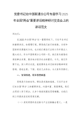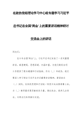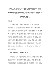 市委副秘书长在理论学习中心组专题学习2025年全国“两会”上的重要讲话精神研讨交流会上的讲话范文同志们:在2025年全国“两会”这一关键时间节点,习近平总书记发表的一系列重要讲话,高屋建瓴、思想深邃,为我们指明了前行方向,提供了根本遵循。身为市委办公室的一员,我们肩负着为市委服务、推动地方发展的重任,深入学习领会总书记重要讲话精神并贯彻落实到实际工作中是义不容辞的责任。下面,我结合自身学习体会与工作实际,谈几点看法。一、深悟讲话精髓,筑牢思想根基思想是行动的先导,理论是实践的指南。习近平总书记在全国“两会”上的重要讲话,涵盖经济、教育、科技人才等多领域,是我们武装头脑、指导实践、推动工作的强大...