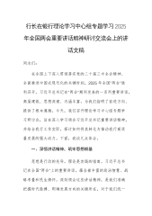 副行长在银行理论学习中心组专题学习2025年全国“两会”重要讲话精神研讨交流会上的讲话文稿