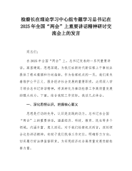 在检察院理论学习中心组专题学习习近平总书记在2025年全国“两会”上的重要讲话精神研讨交流会上的发言