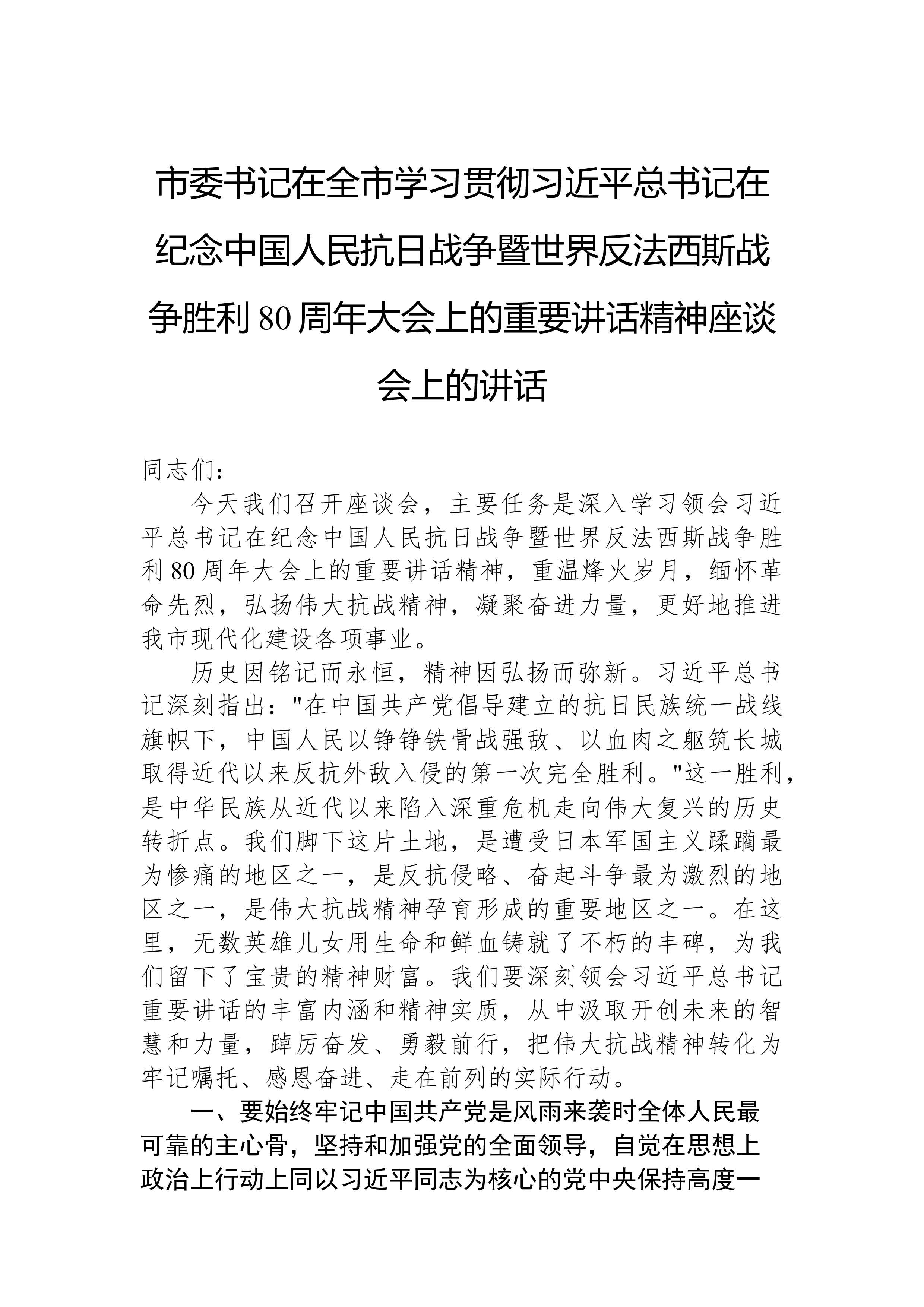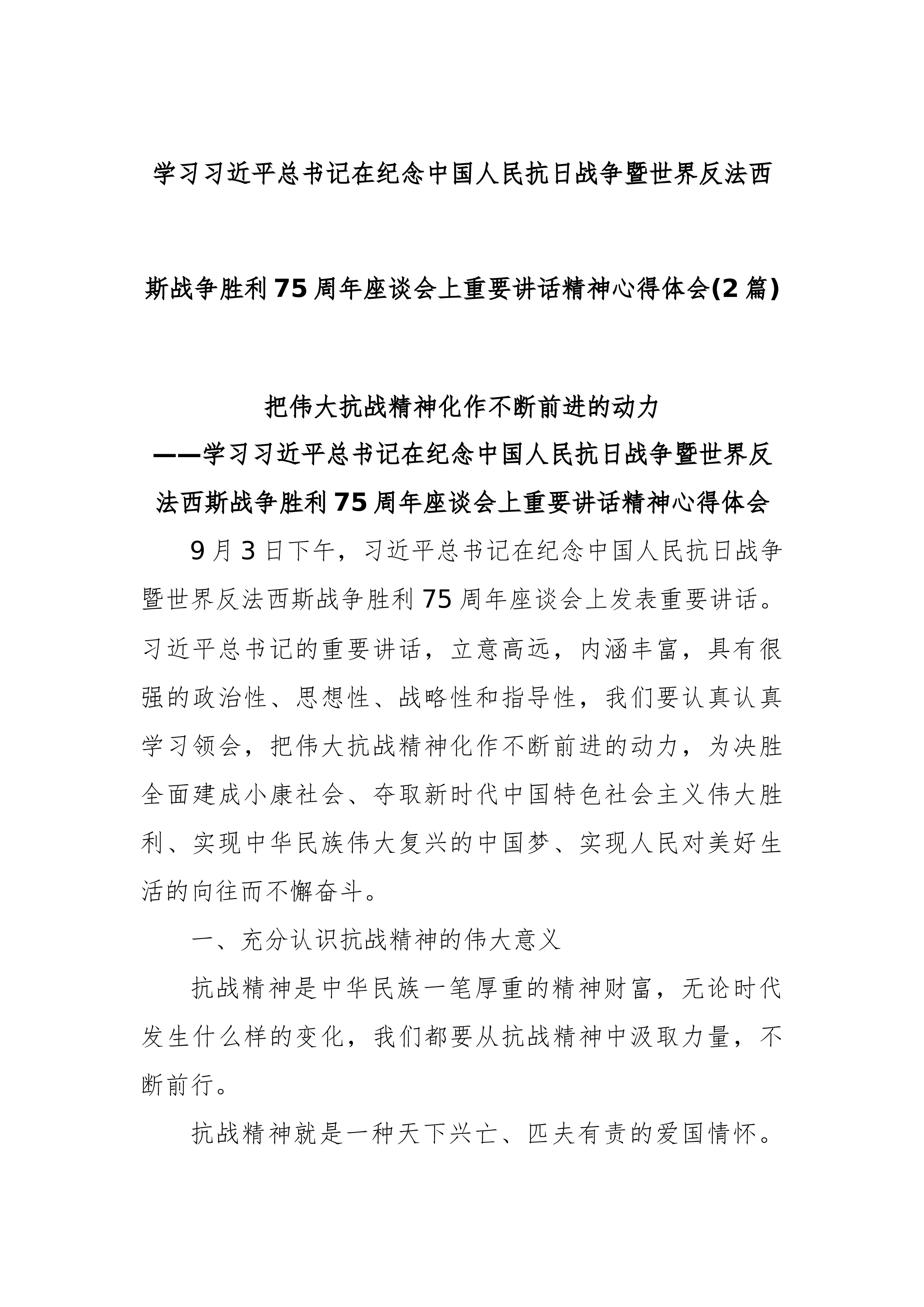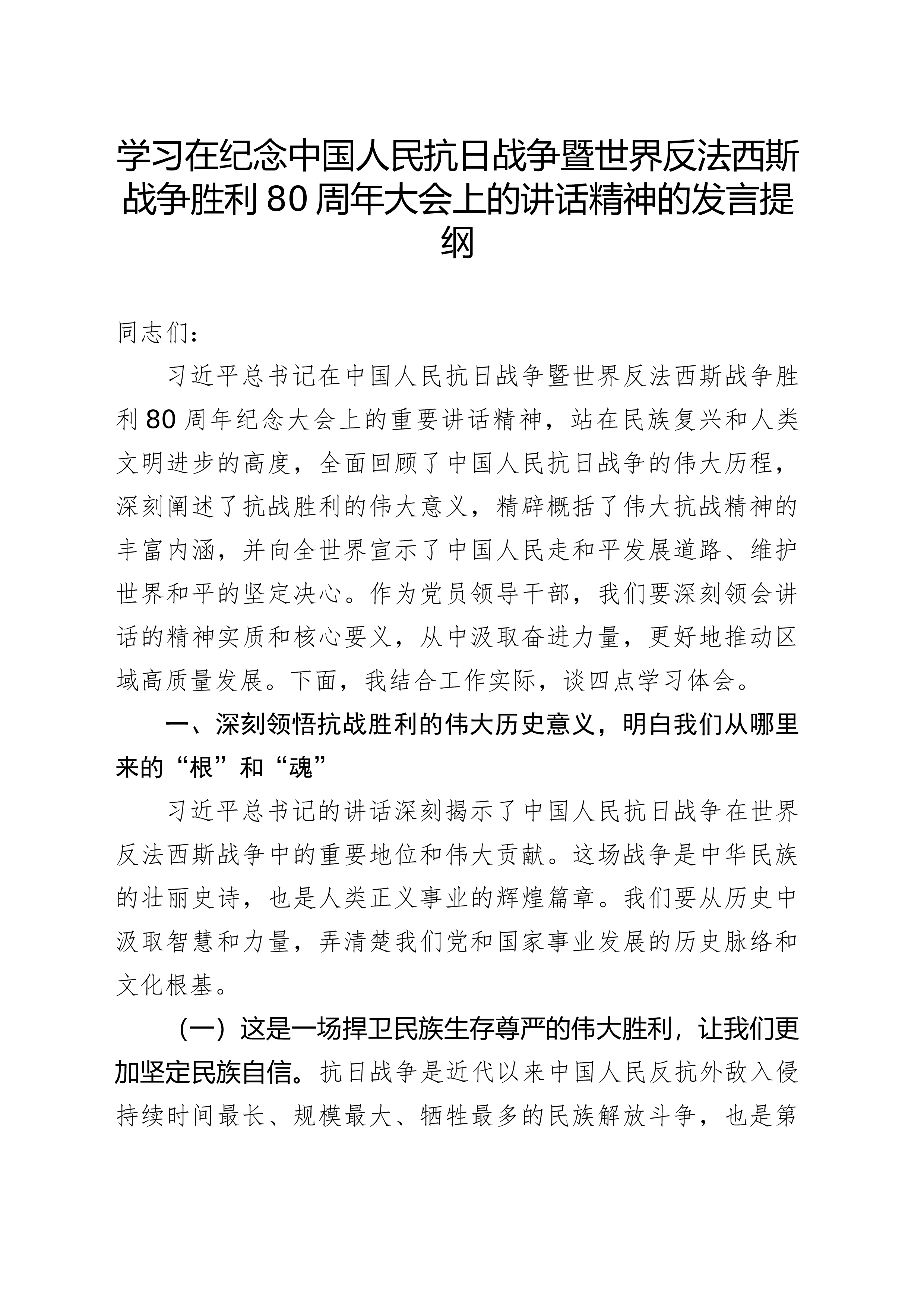 机关干部学习习近平总书记在中国人民抗日战争暨世界反法西斯战争胜利80周年阅兵式上重要讲话精神的心得体会观后感感悟