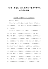 2024年热烈庆祝第40个教师节表彰大会上的讲话稿与在第40个教师节座谈会上讲话稿2篇