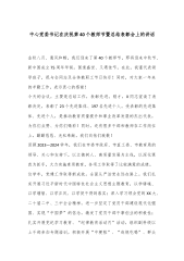 校长在教师节庆祝大会上的致辞:弦歌不辍育桃李砥砺前行谱新章亲爱的老师们、同学们:大家好!“时维九月,序属三秋。”在这满载收获与喜悦的美好时节,我们满怀欣喜地迎来了一年一度的教师节。今日,我们在此盛大集会,表彰先进模范、交流心得感悟、憧憬美好前景、汇聚奋进之力。首先,我谨代表学校,向辛勤耕耘、默默奉献在各个岗位的全体教职员工,致以最诚挚的节日祝福和最崇高的敬意!同时,向关心支持学校发展的各级领导、各界友人以及广大校友,表示衷心的感谢!教育兴则国家兴,教育强则国家强。教育,乃是民族振兴、社会进步的关键基石,是泽被当代、功在千秋的伟大德政工程。诚如我们的领路人所强调:“强教必先强师。”在学校的发展进...