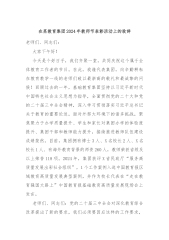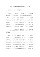 2024年教师节庆祝大会优秀教师代表发言尊敬的各位领导,各位老师:大家好!金色的九月,丹桂飘香,硕果累累。在这个满载收获和喜悦的初秋时节,我们即将迎来属于我们的节日——第四十个教师节。在这样一个特别的日子里,作为教师代表发言,我感到十分荣幸,首先感谢教育局党组和学校给我提供了一个宝贵机会,还要要感谢我的学生们,是你们的纯真与努力,让我的教学生涯充满了意义与色彩。能借此机会,与大家共同分享一下教学工作中的收获和感悟。一、热爱是教育的起点,引领我们在教育的道路上扬帆起航。教育是国之大计,党之大业。回望历史长河,我们不难发现,每一次文明的璀璨绽放,每一轮社会的飞跃进步,皆深深镌刻着教育的烙印。从古代...