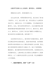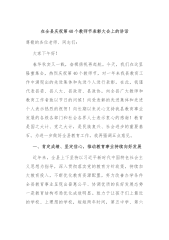 在全区教育发展暨庆祝教师节表彰大会上的讲话:砥砺奋进 担当实干 奋力谱写x教育高质量发展新篇章各位领导、同志们:下面,我主要就如何进一步统一思想、形成共识、夯实举措、凝聚合力,加快推动全区教育事业在新的起点上实现高质量发展先讲几点意见。稍后,市教育局x局长和区委x书记还将作重要讲话,请大家认真学习领会,一并抓好贯彻落实。一、总结经验,发扬成绩,坚定加快教育高质量发展的信心和决心近年来,在区委、区政府的坚强领导和市教育局的大力支持下,通过不懈努力,全区教育事业得到了长足发展,取得了显著成绩。主要有以下五个特点:一是学校办学条件持续改善。累计投资x亿元,新建和改扩建中小学幼儿园x所,新增学位x个,...