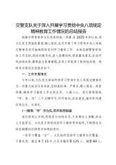 交警支队关于深入开展学习贯彻中央八项规定精神教育工作情况的总结报告根据市局党委和支队党委的统一部署,自2025年初以来,我大队党支部高度重视,精心组织,扎实开展了学习贯彻中央八项规定精神及其实施细则的系列学习教育工作。全体民辅警紧密结合工作实际,坚持问题导向,深入查摆剖析,狠抓整改落实,队伍作风持续向好,履职能力显著增强,各项工作取得了阶段性成效。现将有关情况总结报告如下。一、工作开展情况今年以来,大队党支部始终将学习贯彻中央八项规定精神作为一项重大政治任务来抓,坚持高标准、严要求,精心谋划、周密部署,确保学习教育工作走深走实、入脑入心。我们紧紧围绕“学、查、改”三个关键环节,环环相扣,层层递进,推动作风建设常态化、长效化。(一)聚焦“学”字为先,筑牢思想根基我们深刻认识到,思想是行动的先导...