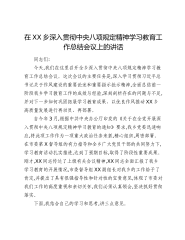 在XX乡深入贯彻中央精神学习教育工作总结会议上的讲话