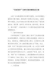 纪委书记在纪检监察干部队伍教育整顿学习会上的发言(3篇)材料1各位同仁,大家好!今天在这里举办教育整顿学习会,是为了加强我们纪检监察干部队伍的教育整顿工作,进一步提高业务素质和工作效能。在这个会议上,我将就纪检监察干部队伍教育整顿工作提出一些思考和看法,希望对大家有所启示和帮助特别是在新时代,我们而临的任务任务更加繁重,监察体制改革己经全面推开,纪检监察干部队伍更加需要注重开展教育整顿工作,加强自身建设,提高敢于担当的精神,积极作为,更好的推进全而从严治党,这是我们工作的高度:首先,我们需要高度重视教育整顿工作。教育整顿是我们纪检监察干部队伍推进全而从严治党的重要一环,要能够彻底深入地解决问题...