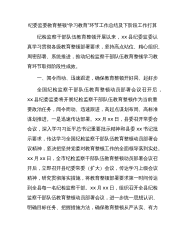 纪委监委教育整顿“学习教育”环节工作总结及下阶段工作打算纪检监察干部队伍教育整顿开展以来,xx县纪委监委认真学习贯彻各级教育整顿部署要求,坚持高点站位、精心组织、周密部署、系统推进,推动纪检监察干部队伍教育整顿学习教育环节取得阶段性成效。一、闻令而动、迅速跟进,确保教育整顿开好局、起好步全国纪检监察干部队伍教育整顿动员部署会议召开后,xx县纪委监委将开展纪检监察干部队伍教育整顿作为当前重要政治任务,闻令而动、迅速跟进,高起点谋划布局、高标准谋划推进。一是迅速传达部署。xx月xx日,县委召开常委会会议,深入学习习近平总书记重要批示精神和县委xx书记批示要求,传达学习全国纪检监察干部队伍教育整顿动...