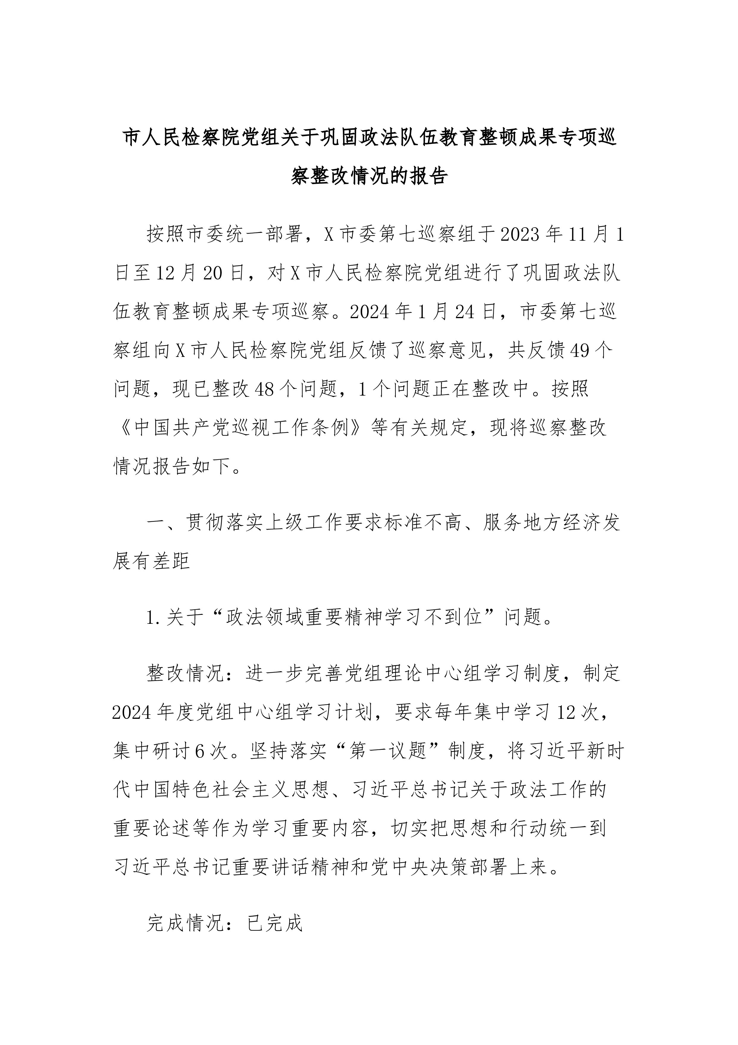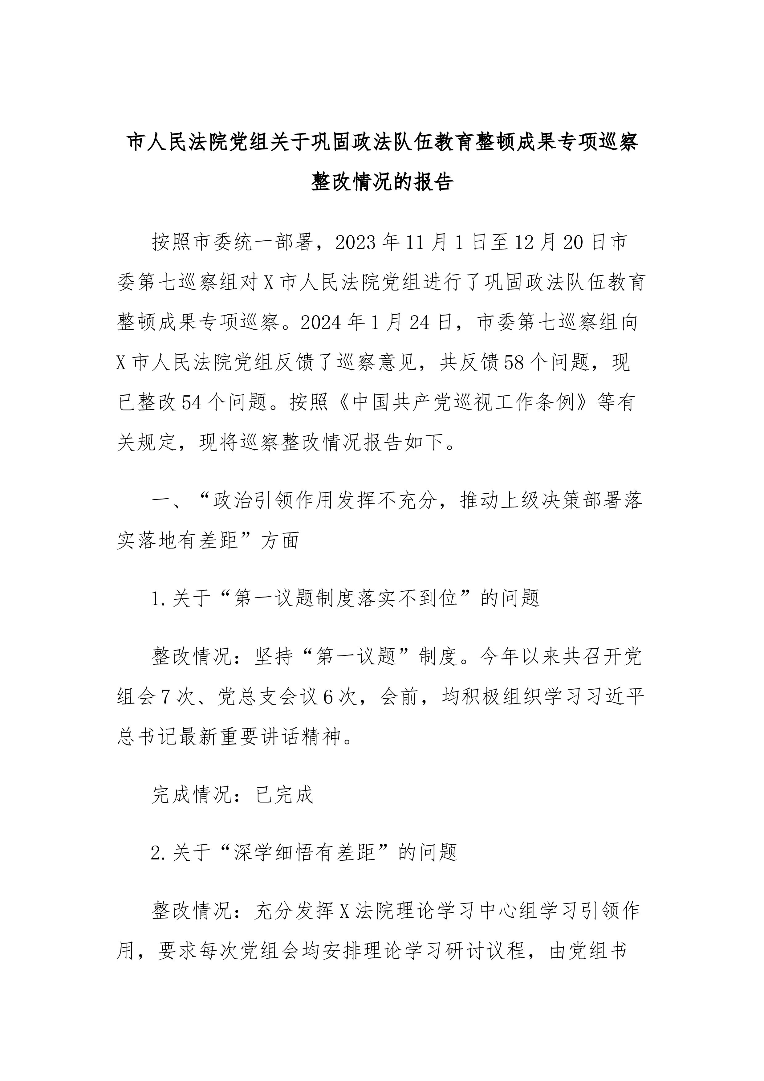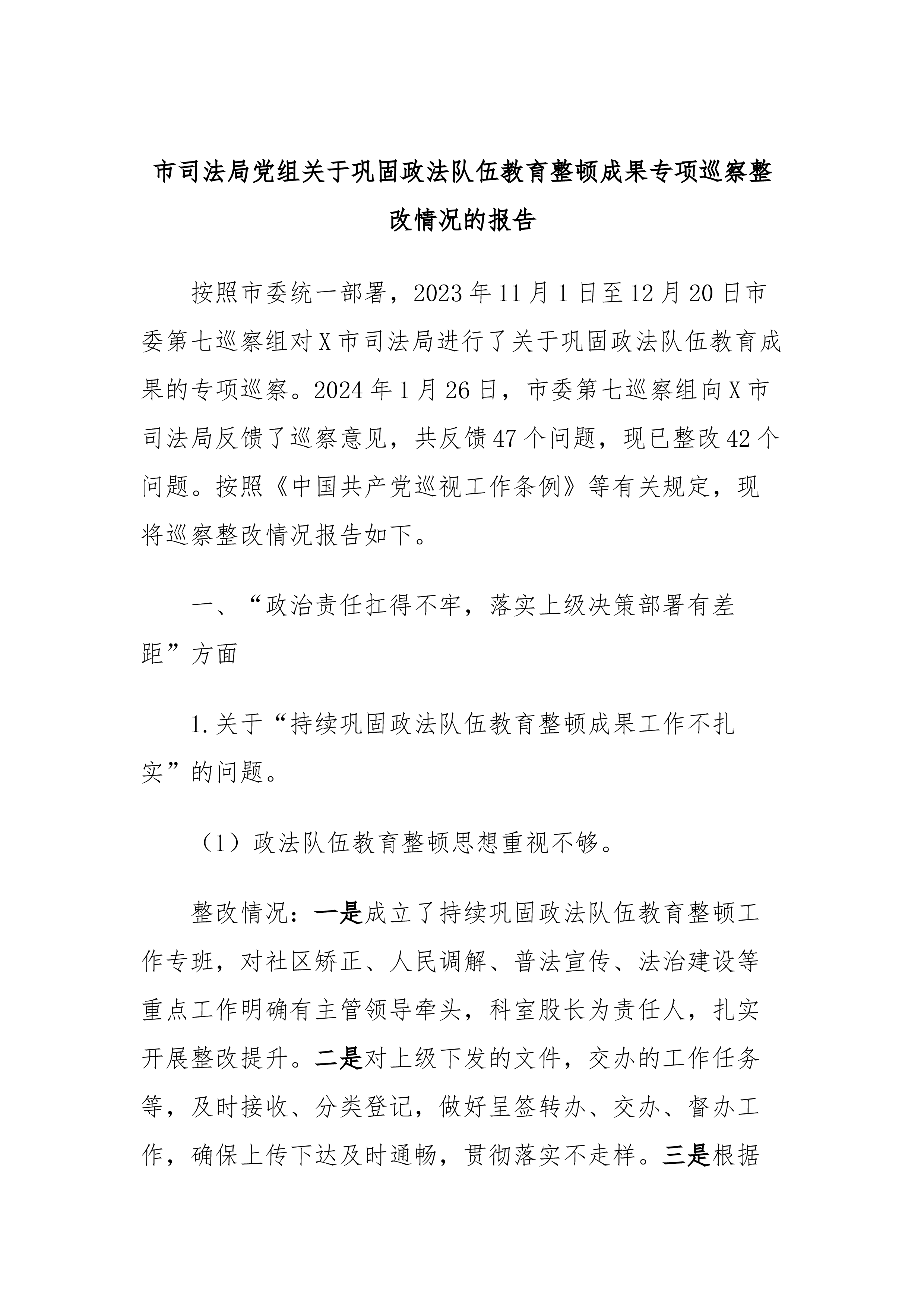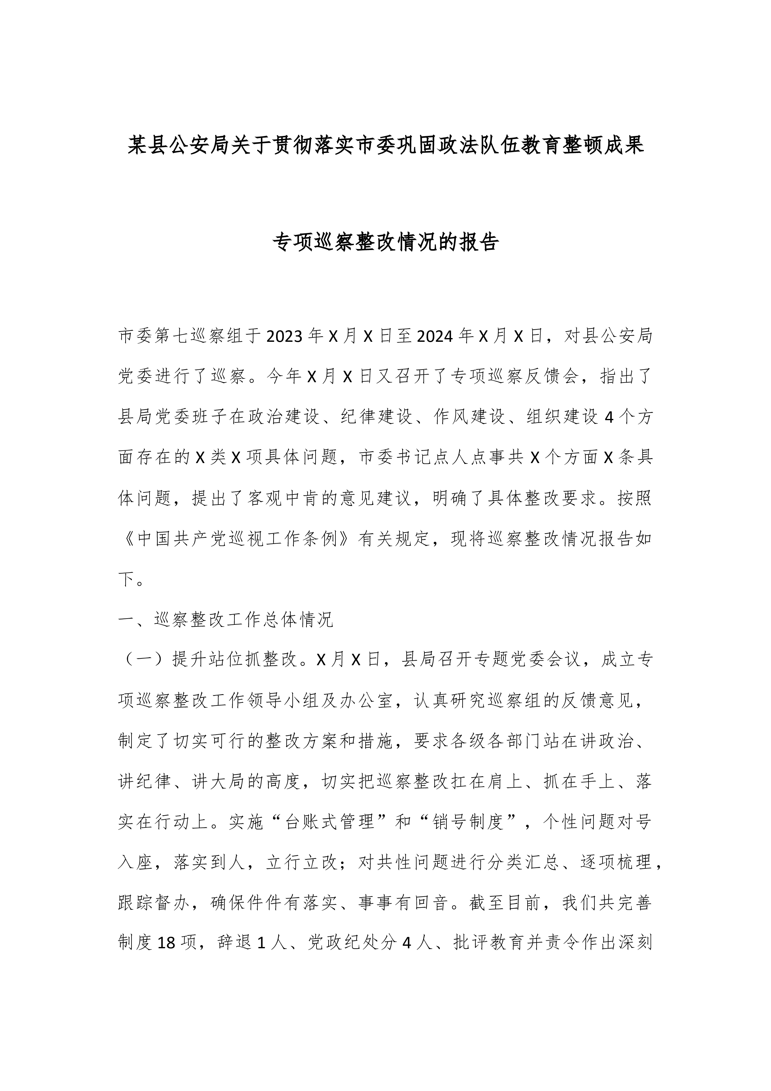 某县公安局关于贯彻落实市委巩固政法队伍教育整顿成果专项巡察整改情况的报告