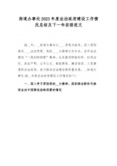 街道办事处2023年度爱国卫生工作总结与市粮食和物资储备局2023年依法治县工作总结暨2024年工作思路【2篇文】街道办事处2023年度爱国卫生工作总结2023年,今年4月是第35个爱国卫生月,围绕“宜居靓家园,健康新生活”主题,街道积极组织开展爱国卫生活动,倡导群众建立文明生活方式,养成健康生活习惯,全力打造群众满意的居住环境。通过悬挂横幅、发放各类文明健康宣传资料等方式,围绕垃圾分类、开拓奋进,创新发展,统筹推进工作,根据街道实际情况,围绕爱国卫生组织建设、环境卫生管理、病媒生物防制、健康教育促进、无烟单位管理工作等方面,认真推进爱国卫生各项任务,开好“十四五”爱国卫生工作新局面。现将工作...