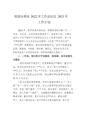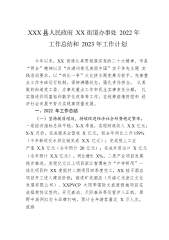 XX县人民政府XX街道办事处2022年工作总结和2023年工作计划(20221124)