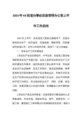 2023年XX街道办事处应急管理办公室上半年工作总结