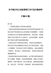 (32篇)关于银行对公存款营销工作计划方案材料汇编