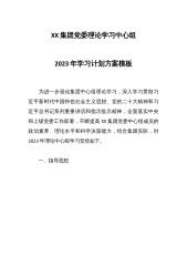 市局2023年党委理论学习中心组学习计划方案2023年是全面贯彻落实党的二十大精神的开局之年。按照市委《2023年全市党委(党组)理论学习中心组学习安排意见》要求,结合全市公安工作和队伍建设实际,就2023年度市局党委理论学习中心组学习制定如下方案。一、总体要求坚持不懈学习马克思列宁主义、毛泽东思想和中国特色社会主义理论体系,切实把学习贯彻党的二十大精神、习近平新时代中国特色社会主义思想和习近平总书记对政法公安工作系列重要指示精神作为学习的首要任务,坚持读原著、学原文、悟原理,切实提升“学懂弄通做实”的觉悟和本领,坚持常学常新、学思践悟、细照笃行,深刻领悟“两个确立”的决定性意义,自觉增强“四...