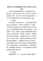 市局2023年党委理论学习中心组学习计划方案2023年是全面贯彻落实党的20th大精神的开局之年。按照市委《2023年全市党委(党组)理论学习中心组学习安排意见》要求,结合全市公安工作和队伍建设实际,就2023年度市局党委理论学习中心组学习制定如下方案。一、总体要求坚持不懈学习马克思列宁主义、毛泽东思想和中国特色社会主义理论体系,切实把学习贯彻党的20th大精神、A新时代中国特色社会主义思想和A总书记对政法公安工作系列重要指示精神作为学习的首要任务,坚持读原著、学原文、悟原理,切实提升“学懂弄通做实”的觉悟和本领,坚持常学常新、学思践悟、细照笃行,深刻领悟“两个确立”的决定性意义,自觉增强“四...