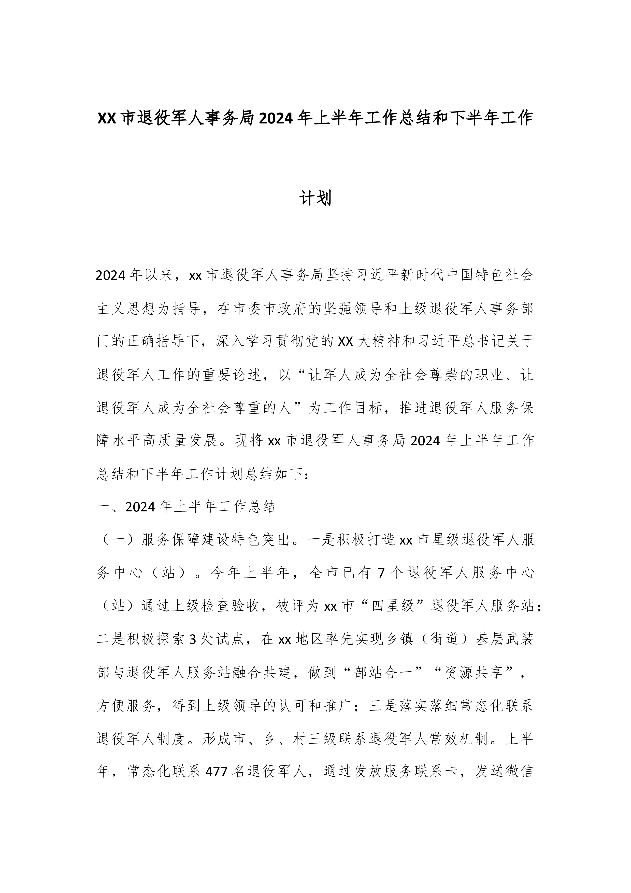 XX市退役军人事务局2024年上半年工作总结和下半年工作计划