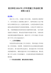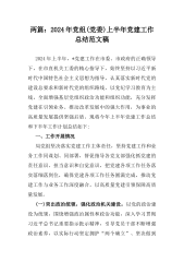 2024年机关单位上半年党建工作总结和下半年工作计划【2篇范文】