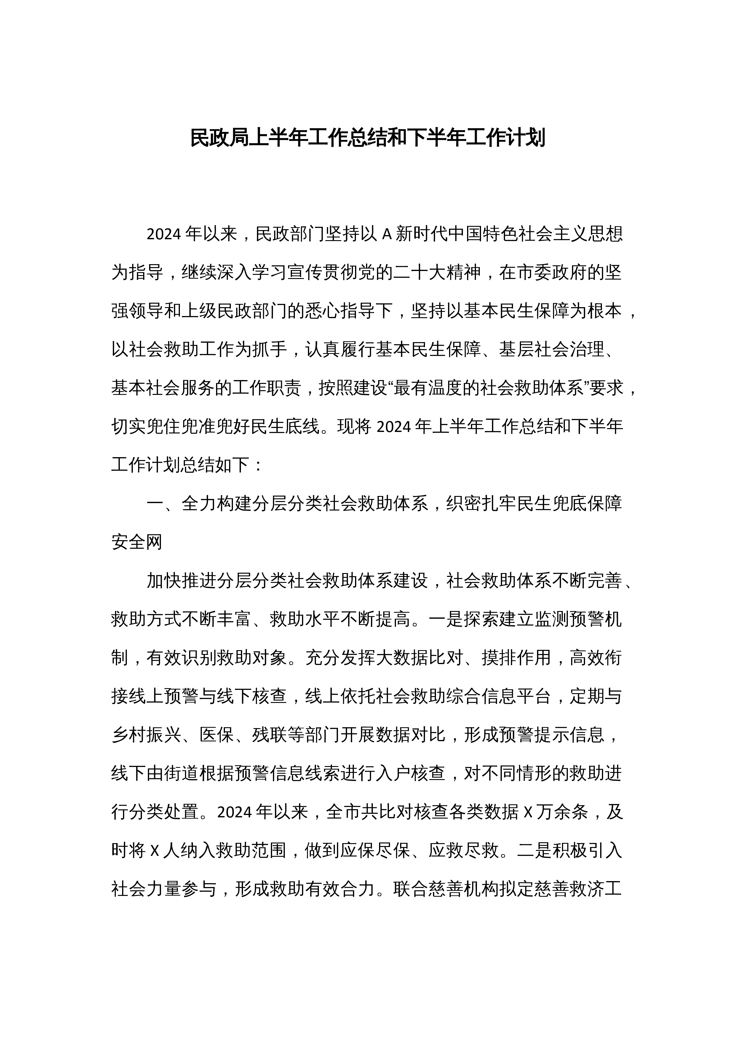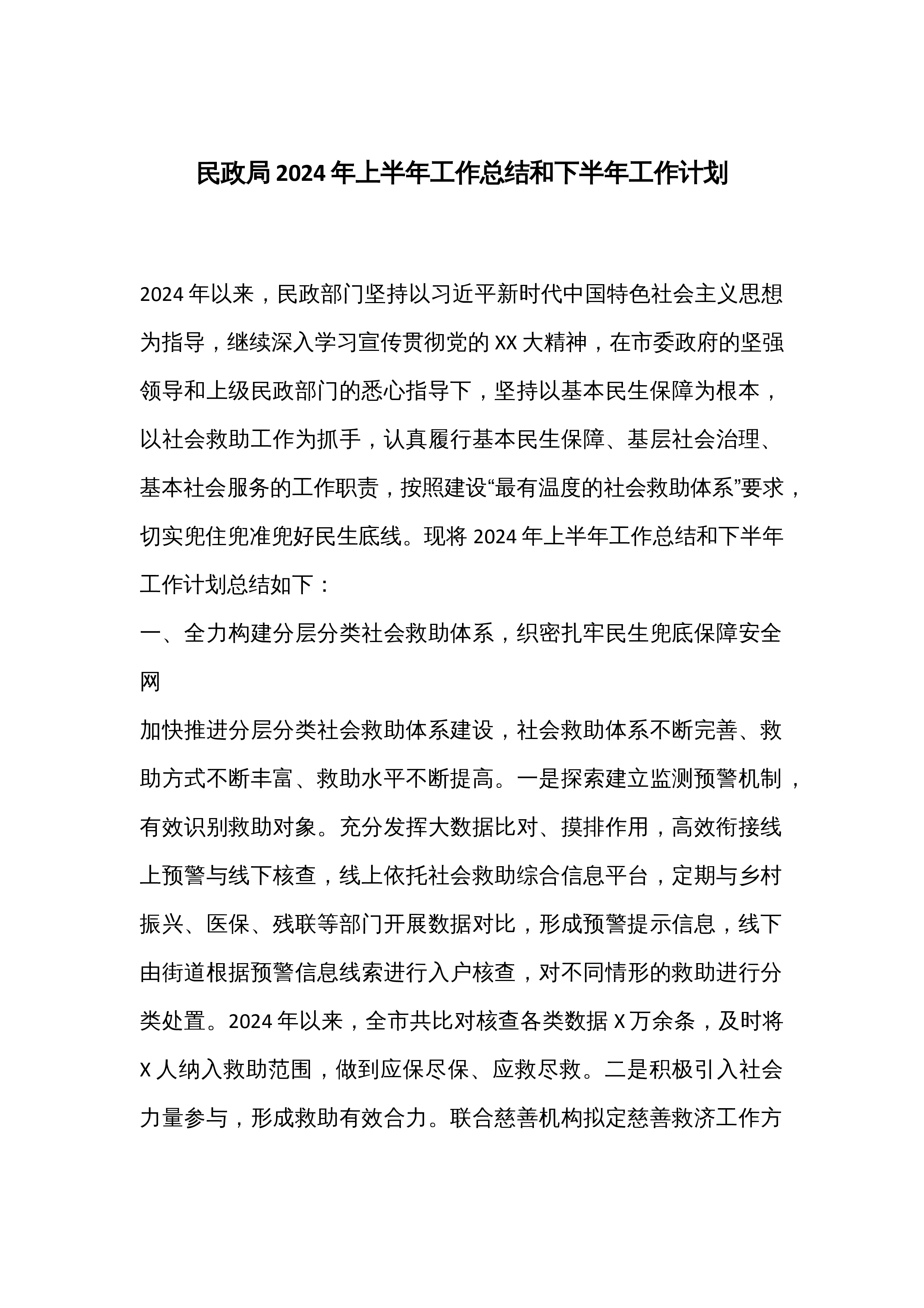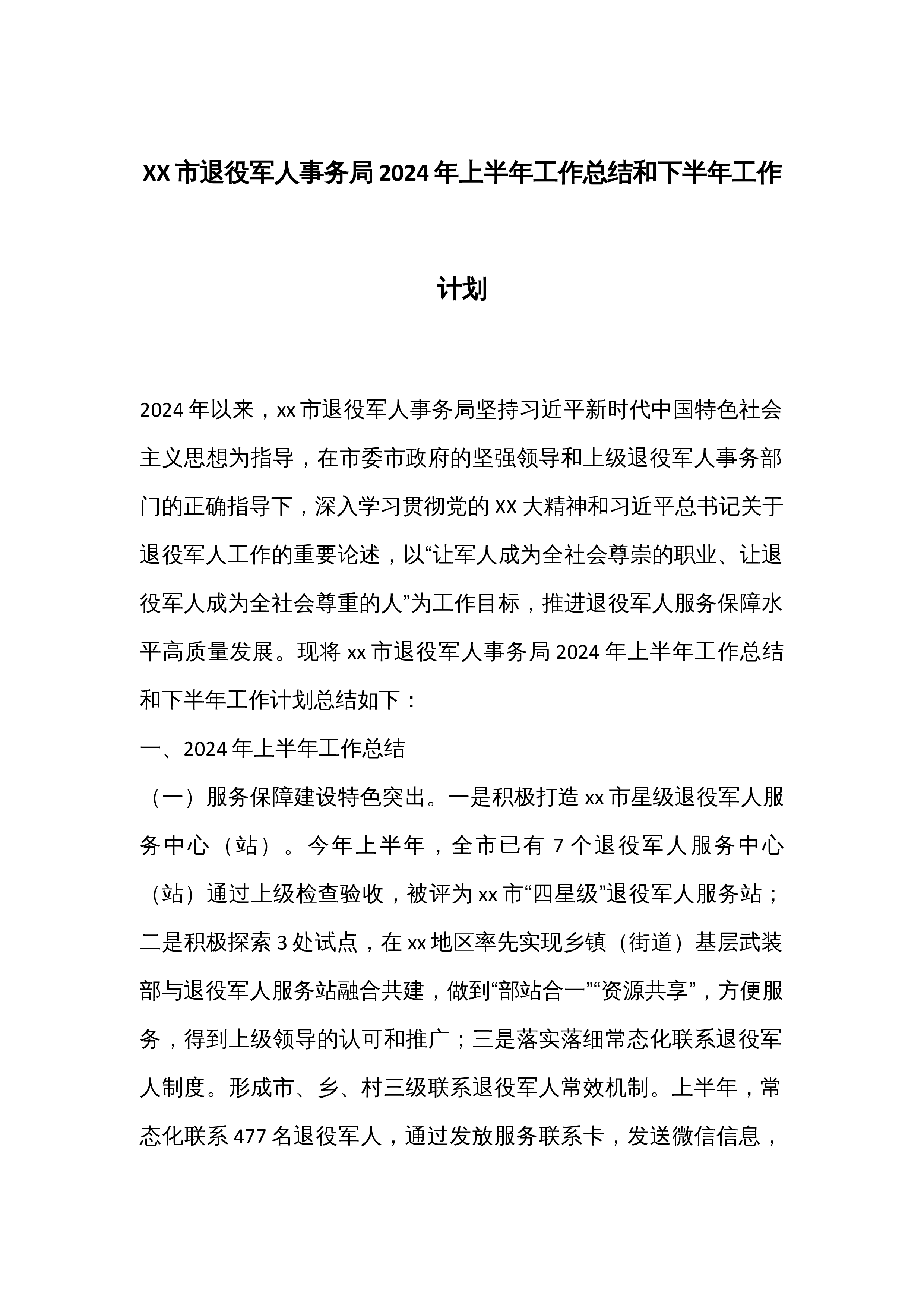 XX市退役军人事务局2024年上半年工作总结和下半年工作计划