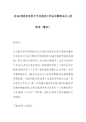 在XX党组传达学习中央经济工作会议精神会议上的讲话(精品)同志们:今天我们召开部党组会议,主要任务是传达学习刚刚闭幕的中央经济工作会议精神,研究部署我们XX系统的贯彻落实措施。刚才,我们已经传达了会议的主要情况。这次中央经济工作会议,是在全党全国深入贯彻落实党的二十届四中全会精神,谋划开启“十五五”新征程的关键节点,召开的一次至关重要的会议。XX总书记在会上发表的重要讲话,高屋建瓴、思想深邃、内涵丰富,科学回答了当前经济形势怎么看、明年经济工作怎么干等一系列重大理论和实践问题,是XX经济思想的最新篇章,为我们做好明年乃至更长一个时期的经济工作,确保“十五五”开好局、起好步,提供了根本遵循和行动指南。下面,我讲三点意见。一、深刻领会我国经济社会发展的重大成就和宝贵经验,切实把思想和行动统一到党...