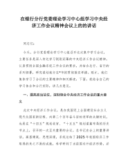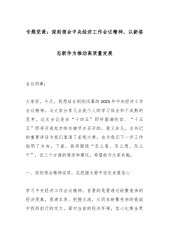 中央经济工作会议精神专题党课:深刻领会中央经济工作会议精神以新姿态新作为推动XX高质量发展各位同事:大家好。今天,我想结合刚刚闭幕的2025年中央经济工作会议精神,与大家分享几点我个人的学习体会和不成熟的思考。这次会议是在“十四五”即将圆满收官、“十五五”即将开局起步的关键节点召开的,意义非凡。总书记的重要讲话为我们厘清了宏观大势,也为我们下一步工作指明了方向。下面,我将围绕“怎么看、怎么想、怎么干”,谈三个方面的感受和建议,希望能与大家共勉。一、深刻领会精神实质在把握大势中坚定发展信心学习中央经济工作会议精神,首要的是要透过纷繁复杂的经济现象,看清本质、把握主流,从而在纷繁芜杂的挑战中找到前行的定力。面对当前的经济环境,信心比黄金更重要,而这份信心,来源于我们对党中央科学判断的深刻领会和对...