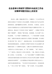 在全县审计系统学习贯彻中央经济工作会议精神专题交流会上的发言同志们:近期,我通过集中学习、专题研讨、个人自学等方式原原本本研读了中央经济工作会议精神,特别是习近平总书记所作的重要讲话,越学越感到方向更明、责任更重、干劲更足。这次会议是在全面建设社会主义现代化国家开局起步关键阶段召开的一次重要会议,既总结了今年经济工作的“成绩单”,又擘画了明年发展的“路线图”,特别是“稳中求进、以进促稳、先立后破”的工作总基调,“五个坚持”的规律性认识,“三个更好统筹”的实践要求,为我们在新征程上做好经济工作提供了根本遵循。作为基层审计机关的“第一责任人”,我深刻认识到,审计是党和国家监督体系的重要组成部分,必须把学习贯彻中央经济工作会议精神与贯彻落实党的二十大精神结合起来,与履行审计监督职责结合起来,与服务...