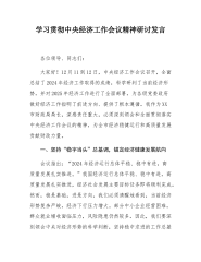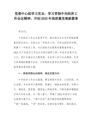 党委中心组学习发言:学习贯彻中央经济工作会议精神,开创2025年高质量发展新篇章