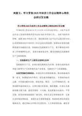 党委中心组学习发言:学习贯彻中央经济工作会议精神,开创2025年高质量发展新篇章同志们:中央经济工作会议是党中央、国务院在年末召开的规格最高的经济会议,总结过去一年经济工作,分析当前经济形势,部署下一年经济工作,对全国经济发展具有重要指导意义。2025年中央经济工作会议为我们指明了新一年经济发展方向,今天,我们开展此次主题党课,旨在深入学习会议精神,引导大家准确把握重点任务,以积极的态度和扎实的作风,为经济高质量发展贡献力量。一、精准把握会议精神,锚定发展方向中央经济工作会议强调,要坚持稳中求进、以进促稳、先立后破,多出有利于稳预期、稳增长、稳就业的政策,在转方式、调结构、提质量、增效益上积极...