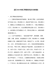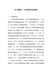 在全区经济运行分析暨“双过半”冲刺调度会议上的讲话同志们:刚才,区统计局汇报了主要经济指标完成情况,区发改局汇报了重大产业项目、政府性投资项目推进情况,区财政局汇报了财税收入、专项债使用等情况,区工信局汇报了工业经济运行情况,区商务局汇报了项目招引、外资外贸等情况,区应急管理局汇报近期安全生产工作情况,X、X、X三个板块和X做了汇报交流,其他板块、部门也都做了书面交流。大家的发言讲现状把握全面、谈问题分析透彻、列举措精准有力,讲得都很好、都很实。应该说,今年以来,全区上下持之以恒抓项目、强产业、促转型,坚定不移抓大事、攻难事、办实事,经济运行呈现出稳中加固、稳中向好的良好态势。一是经济运行平稳...