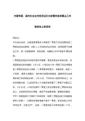 市委常委、副市长在全市经济运行分析暨市政府重点工作推进会上的讲话同志们:今天这次会议,主要是贯彻落实X和我市一季度工作总结暨攻坚二季度动员会议精神,分析1—4月份经济运行情况,安排部署下步重点工作,进一步提振精神、攻坚克难,为确保上半年“双超半”奠定基础。二季度是实现全年目标任务的关键期,更是决胜全年目标任务、实现晋级进位的关键期。5月6日,X书记在X市一季度工作总结暨攻坚二季度动员会议上强调:“二季度要深挖潜力、克难攻坚,锚定‘一个目标’、狠抓‘九项重点’,集中精力抓落实抓推进,确保经济社会发展各项工作持续走在前”。5月15日,于市长在X政府常务会上,从经济调度分析、工业经济等八个方面安排部...