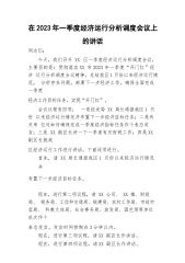县政府在全市经济运行分析会上的表态发言
