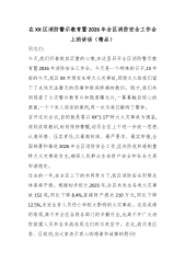 在XX区消防警示教育暨2026年全区消防安全工作会上的讲话(精品)同志们:今天,我们怀着极其沉重的心情,在这里召开全区消防警示教育暨2026年消防安全工作会。今天是一个特殊的日子,15年前的今天,我区XX市场发生特大火灾事故,那场大火给我们留下了永远无法磨灭的伤痛和极其惨痛的教训。刚才,我们共同观看了火灾警示教育片和隐患曝光片,一幕幕触目惊心的画面,一个个发人深省的案例,再一次为我们敲响了警钟。召开这次会议,目的就是要以XX“1·17”特大火灾事故为镜鉴,深刻汲取教训,时刻保持警醒,动员全区上下进一步统一思想、认清形势、压实责任,以最高标准、最严要求、最实举措,全面部署和推进2026年全区消防安全工作,坚决防范和遏制重特大火灾事故发生,确保人民群众生命财产安全和社会大局和谐稳定。过去的一年,...