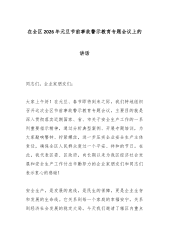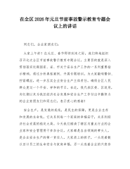 在XX开发区第四季度安全生产与消防安全暨警示教育会上的讲话(精品)同志们:今天,我们在这里召开XX开发区第四季度安全生产与消防安全暨警示教育会,主要任务是深入学习贯彻习近平总书记关于安全生产的重要指示批示精神,分析研判当前开发区面临的安全生产形势,总结近期工作,部署岁末年初这一关键时期的安全防范重点任务。时至年终岁尾,各项生产经营活动进入冲刺阶段,加之冬季低温、雨雪、冰冻等极端天气多发,各类风险交织叠加,安全生产的压力陡增,容不得我们有丝毫的麻痹和懈怠。就在上个月,2025年11月26日,香港新界大埔屋邨宏福苑发生火灾,造成了重大的人员伤亡和财产损失。习近平总书记对此作出重要批示,要求各地深刻吸取教训,举一反三,全面排查整治各类风险隐患,坚决防范和遏制重特大事故发生。总书记的批示,言犹在耳,...