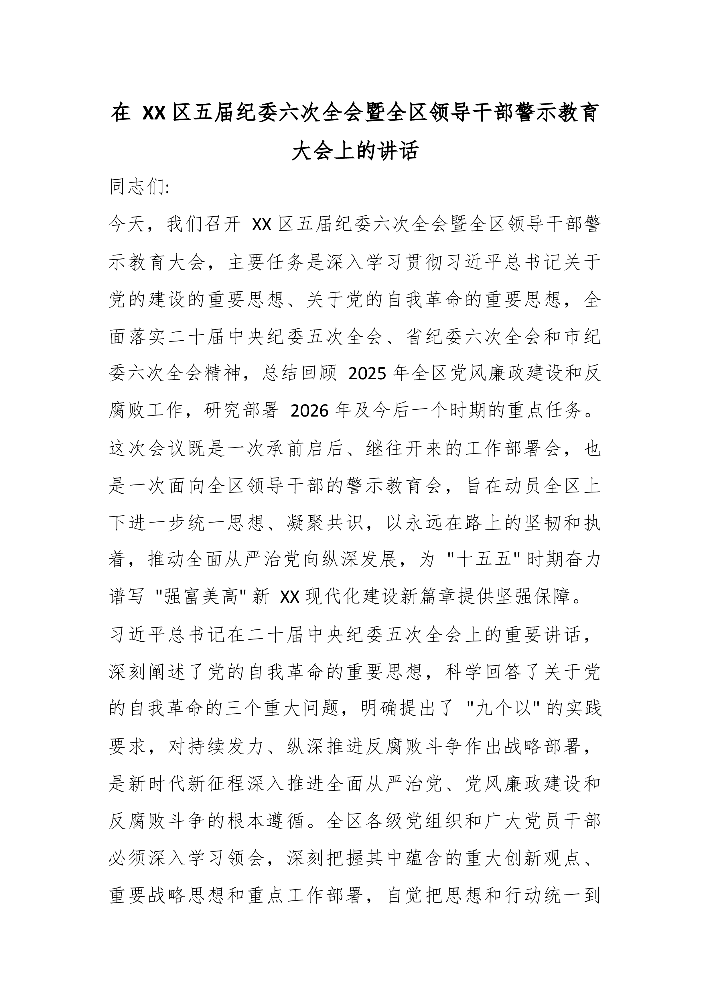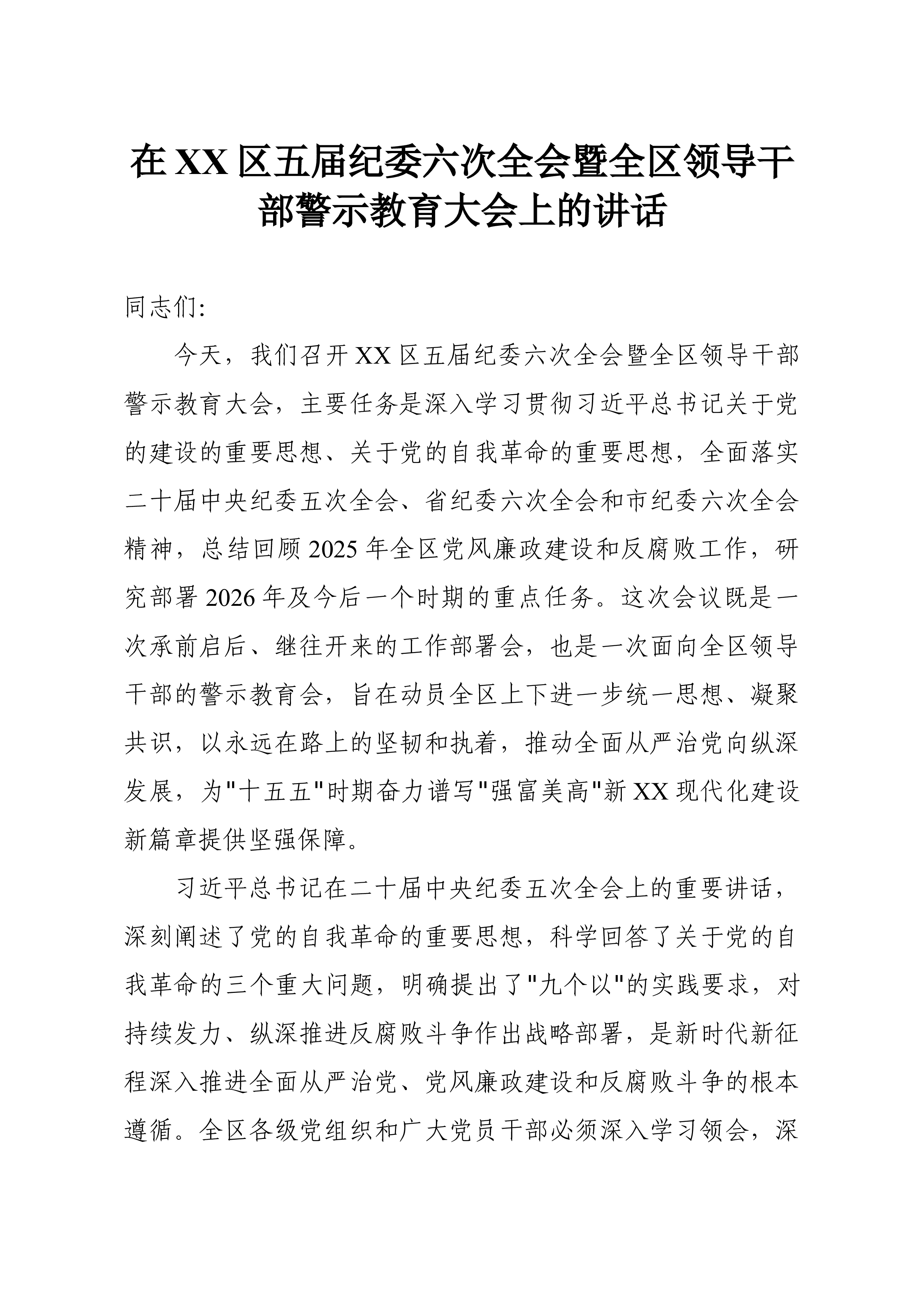 在 XX 县 2026 年企业集中复工复产期间安全生产业务培训暨事故警示教育会上的讲话