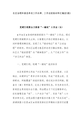 2025年5月下半月工作总结、工作汇报、经验材料汇编(77篇)目录一、党委1.昌吉州深入推进抓党建促乡村振兴工作综述…12.龙岩市新时代文明实践工作综述…43.淮北师范大学第二次党代会以来五年发展工作综述…8二、人大4.茂名市人大常委会以良法护航高质量发展纪实…115.怀化市鹤城区人大常委会创新贯彻“三会三文”精神纪实…146.嘉兴市人大常委会助推民营经济高质量发展纪实…18三、政府7.威宁自治县石门乡巩固拓展脱贫攻坚成果综述…218.贵州职业教育高质量发展综述…259.保山全市生态文明建设工作综述…2910.石家庄持续深入推进精神文明建设工作综述…3211.湘潭市精神文明建设综述…3612.鹤壁市老旧小区改造工作综述…4013.珲春市密江乡推进美丽乡村建设综述…4214.淮北全市科技创新工...
