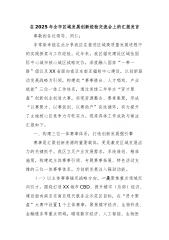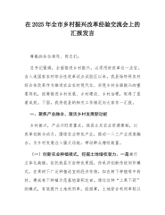 在2025年全市村集体经济高质量发展经验交流会议上的汇报发言尊敬的各位领导、同志们:非常荣幸能在此分享XX县发展村集体经济的实践探索。去年以来,我县紧扣“因地制宜、精准施策”发展主线,统筹推进资源整合、人才集聚、产业升级,村集体经济发展取得显著成效。现将主要做法汇报如下:一、深化协同联动机制,构建融合发展新格局推进村集体经济发展,协同联动是关键。我县通过构建全方位、多层次协作体系,打破部门壁垒、激活要素流通,为村集体经济发展筑牢坚实支撑。(一)健全包联机制,畅通基层治理通道。一是完善领导包联体系。建立县级领导干部及乡镇领导班子成员全覆盖包联制度,实现乡镇(街道)、村(社区)包联工作无死角。通过扁平化包户链条,压实组织、财政、农业等部门责任,集中破解制约村集体经济增收的难点问题,形成上下贯通、...