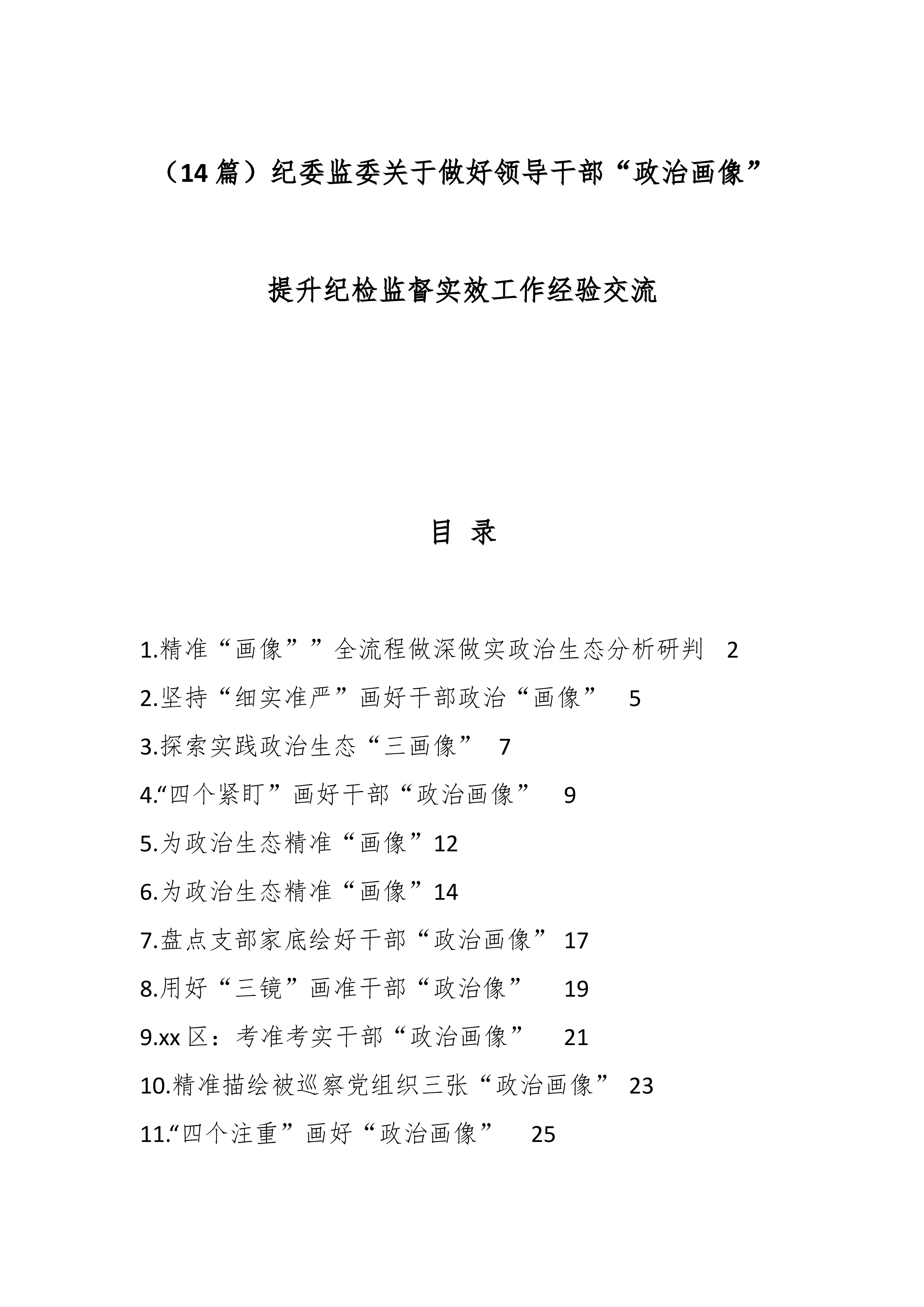 (14篇)纪委监委关于做好领导干部“政治画像”提升纪检监督实效工作经验交流
