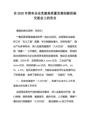 在2025年国有企业党建高质量发展创新经验交流会上的发言