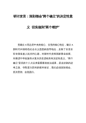 始终以高度的政治自觉思想自觉行动自觉拥护“两个确立”做到“两个维护”党确立习近平同志党中央的核心、全党的核心地位,确立习近平新时代中国特色社会主义思想的指导地位,反映了全党全军全国各族人民共同心愿,对新时代党和国家事业发展、对推进中华民族伟大复兴历史进程具有决定性意义。“两个确立”是深刻总结党的百年奋斗尤其是新时代以来伟大实践得出的重大历史结论,是体现全党意志、反映人民心声的重大政治判断,是历史和人民的共同选择、郑重选择、必然选择,使全党有了顶梁柱、全国人民有了主心骨,思想上有了定盘星、行动上有了指南针,是党和国家之大幸、人民之大幸、中华民族之大幸。深刻领悟“两个确立”的决定性意义,践行“两个...