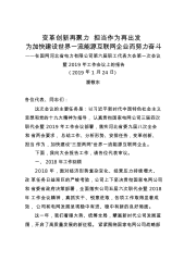 变革创新再聚力担当作为再出发为加快建设世界一流能源互联网企业而努力奋斗——在国网河北省电力有限公司第六届职工代表大会第一次会议暨2019年工作会议上的报告(2019年1月24日)潘敬东各位代表、同志们:这次会议的主要任务是:以习近平新时代中国特色社会主义思想和党的十九大精神为指导,认真贯彻国家电网公司三届四次职代会暨2019年工作会议部署,落实河北省委九届八次全会和省两会要求,总结工作、分析形势、安排任务,变革创新、担当作为,加快建设“三型两网”世界一流能源互联网企业。下面,我向大会报告工作,请各位代表审议。一、2018年工作回顾2018年,面对经济形势复杂变化、经营压力持续增大、改革任务日益...