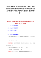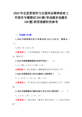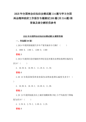 2025年全国两会应知应会测试题114题与学习全国两会精神政府工作报告专题测试200题(共314题)附答案及部分解析供参考