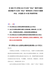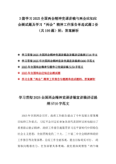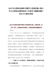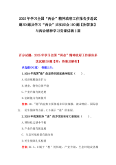 2025年全国两会精神专题学习党课讲稿2篇与学习全国两会精神政府工作报告专题测试题2份共475题含答案