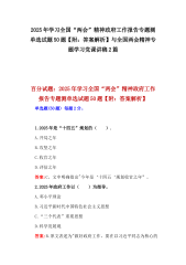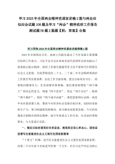 2025年学习全国两会精神政府工作报告专题测试题2份共475题含答案学习贯彻两会精神党课宣讲稿2篇